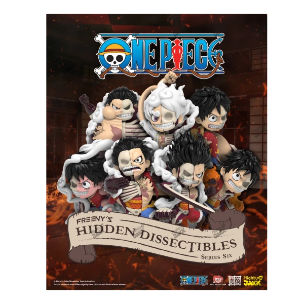 Gear up, Monkey D. Luffy takes the stage for this edition of Freeny’s Hidden Dissectibles: One Piece. Featuring all the gears revealed so far, this blind box series is a must-have for all fans! Featuring Jason Freeny’s iconic half-and-half stylisation, each gear is dissected to reveal the Straw Hat captain’s X-Ray. Conquer the seasons, become the pirate king with Luffy!